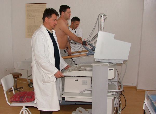 Functional diagnostics of cardiovascular system (Ergo test) and ultrasound diagnostics of heart, aimed at diagnosing coronary disease and determining fitness functional ability of athletes.
