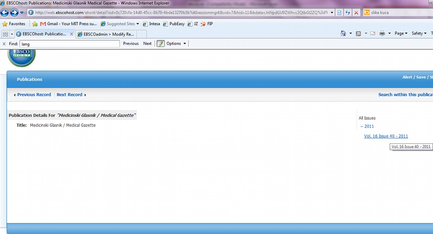 Časopis Medicinski glasnik je uvršćen u najobimniju Ebscovu bazu ACADEMIC SEARCH COMPLETE. Dostupani su volumeni od juna 2011. godine.