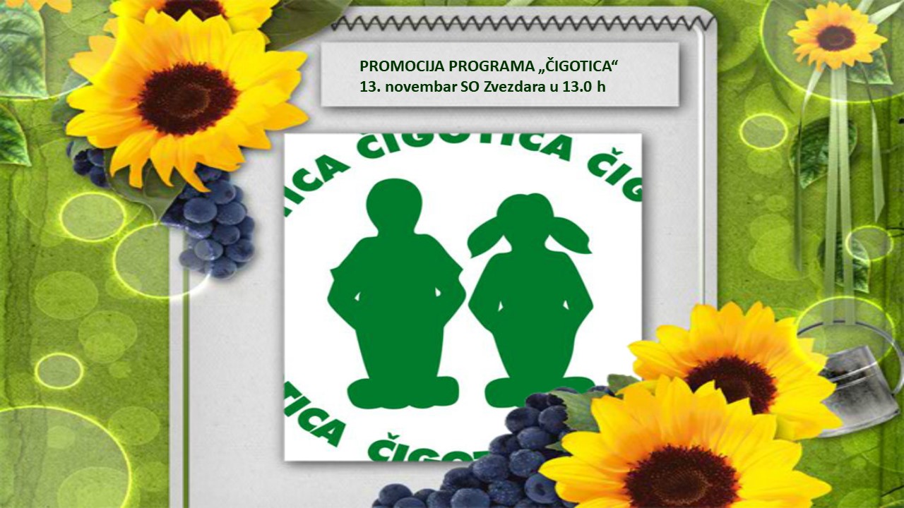 Promocija Programa " Čigotica održana je u SO Zvezdara 13. novembra 2017. u 13.0 h. Promociji su prisustvovali predstavnici lokalne smouprave, pedijatri, direktor doma zsdravlja, direktori osnovnih i srednjih škola, profesor fizičkog vaspitanja, i psiholozi.
