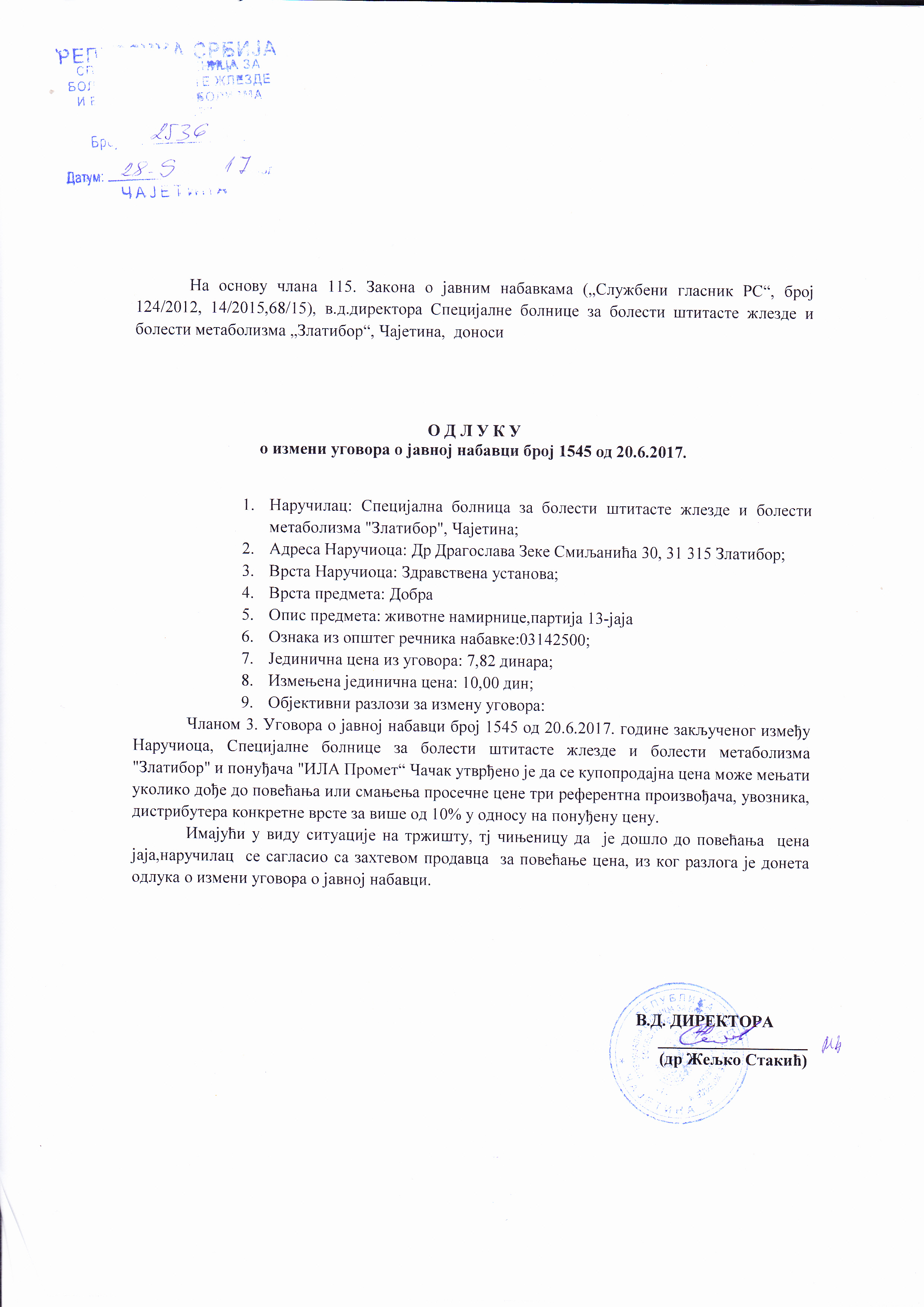 | Odluku o izmeni ugovora, partija 13 za JN Životnih namirnica 2/2017 (1.51 MB) | 1.51 MB |