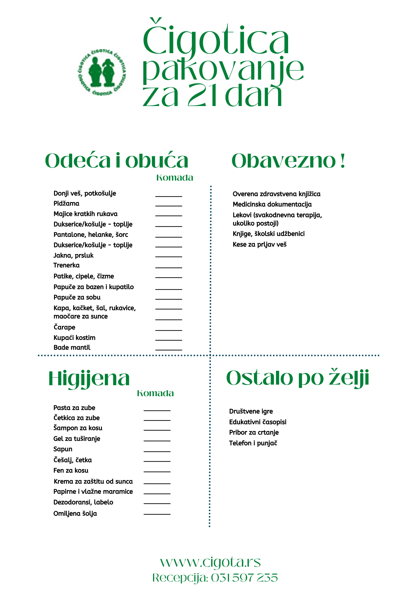 PRIJEM DETETA U ČIGOTICA PROGRAM: