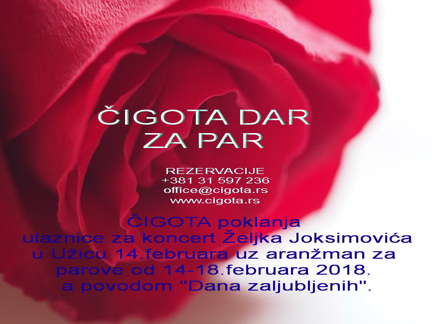 ČIGOTA POKLANJA ulaznice za koncert Željka Joksimovića u Užicu 14. februara uz aranžman za parove, od 14. do 18. februara 2018. povodom „Dana zaljubljenih“.