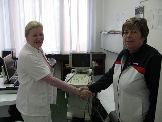 Ultra zvuk i prateću medicinsku opremu, predsednica “Duge” je predala predstavnicima ČIGOTE® , pomoćnici direktora za medicinske poslove, dr Snežani Marinković i glavnoj sestri Bolničkog odeljenja, Biljani Korać