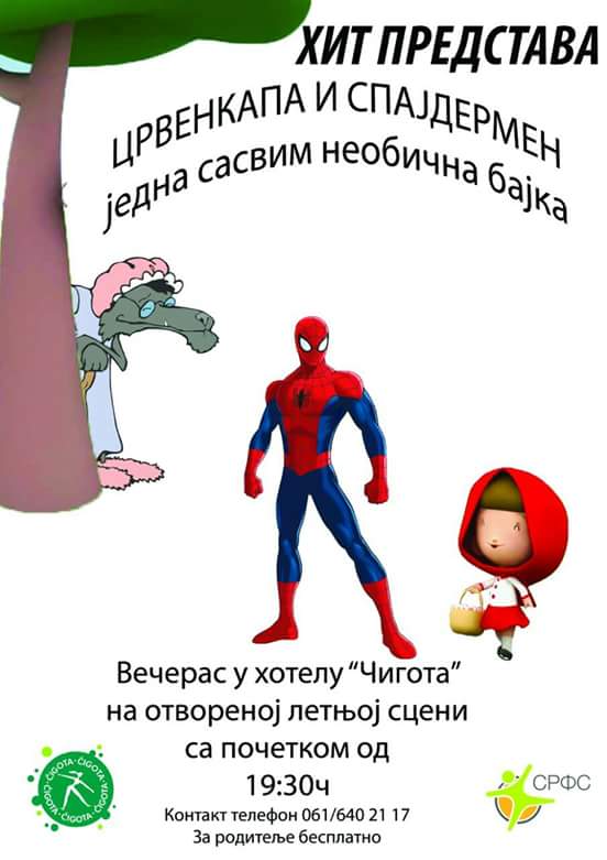 Da li će SpiderMan spastiti Crvenkapu? Mi znamo odgovor! емотикон wink Pridruzite nam se večeras na predstavi u 20.30 na terasi Čigota.